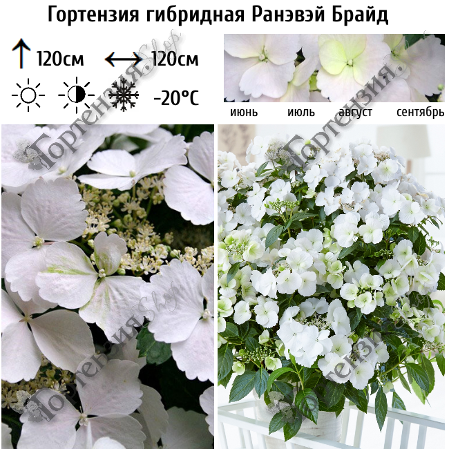 Гортензия крупнолистая Сбежавшая невеста (Runaway Bride) наиболее декоративный среди представителей гортензии.  Этот сорт гортензии формирует не единственное соцветие на кончике побега, а несколько (до шести штук), развивающихся из каждой боковой почки на вершине ветки. Лепестки бутонов белого цвета, с лёгким розовым оттенком. В начале цветения появляются освежающие известково-зеленые цветочные бутоны, напоминающие цветки гипсофилы. По мере цветения цвет меняется от белого до бледно-розового. Цвет цветка не меняется в зависимости от pH. Цветет с июня по сентябрь.