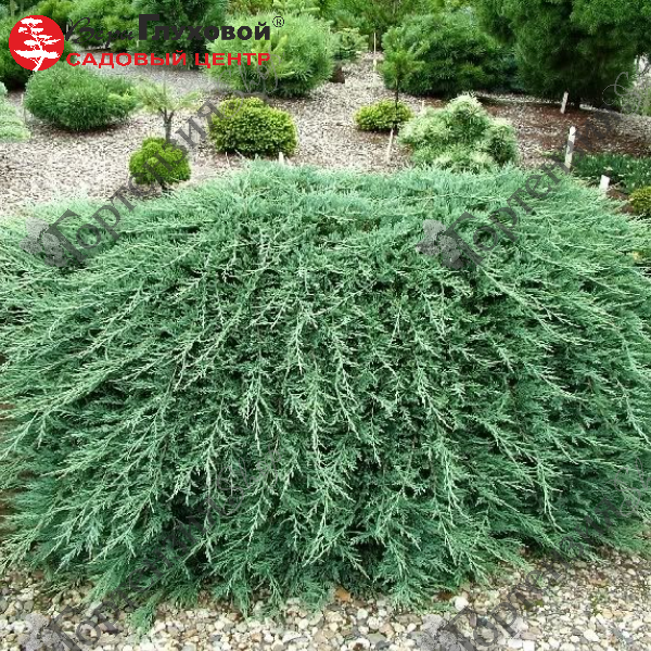 Можжевельник горизонтальный Вилтони (Juniperus horyzontalis Wiltonii) - стелющийся кустарник, достигающий 0,1-0,2 м высоты и около 2 м в диаметре. Годовой прирост 15 см. Голубовато -зелёные ветви, очень гибкие, быстро разветвляются и стелются по земле, образуя густой 'ковёр'. Рекомендуется для альпинариев, для каменных стенок (свисающие побеги) и на откосы, для насаждений в контейнерах. Можжевельник горизонтальный 'Вилтони' замечательное почвопокровное растение, на небольшой площади может заменять траву.