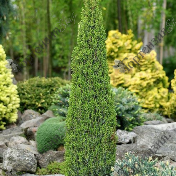 Можжевельник обыкновенный  'Арнольд'- узкоколоновидный компактный кустарник высотой до 2 м. Побеги растут вертикально, плотно прилегая друг к другу. Растёт медленно 10-15 см в год. Хвоя голубовато-зелёная. Арнольду не страшны зимние снежные шапки - хвоя у него маленькая и расположена плотно, поэтому он не сгибается, как другие сорта, под тяжестью налипшего мокрого снега. Предпочитает солнечные места. В тени растения вытягиваются и теряют насыщенную окраску.