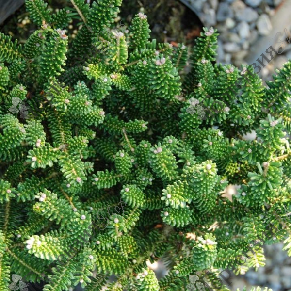 Пихта корейская Оберон - плотная, широко-округлая пихта, растёт медленно, высотой до  60 см, и шириной до  80 см. Хвоя короткая, широкая, тёмно-зелёная, блестящая. Место солнечное, почва влажная, хорошо дренированная, Морозостойкость до -34. Используется в одинойчной и групповой посадке, в древесно кустарниковых группах, рокарии, альпинарии.