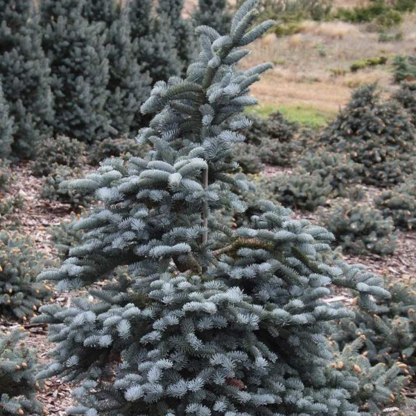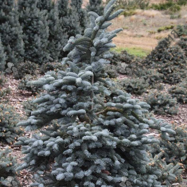Пихта высокорослая Глаука- коническая или ассиметричная медленно растущая пихта высотой до 20 м. Хвоя имеет интенсивный сине-серый цвет как сверху, так и снизу. Крупные шишки появляются осенью. Сначала они голубовато-зеленые, позже становятся красновато-коричневыми. Место солнечное, почва кислая, влажная, хорошо дренированная. Морозостойкость до -34. Используется в одинойчной и групповой посадке, в древесно кустарниковых группах.