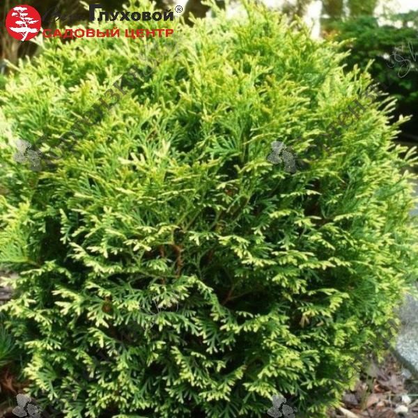 Туя западная Вотерфилд - карликовый медленно растущий шаровидный, хвойный кустарник. К 10-ти годам высота до 60 см, ширина до 60 см. Веточки короткие, густые, плоские, повёрнуты вертикально. Хвоя оливково-зелёная, весной и летом с жёлтыми кончиками на концах побегов, зимой – с бронзовым оттенком. Почва дренированная. Морозостойка, светолюбива, ветроустойчива.