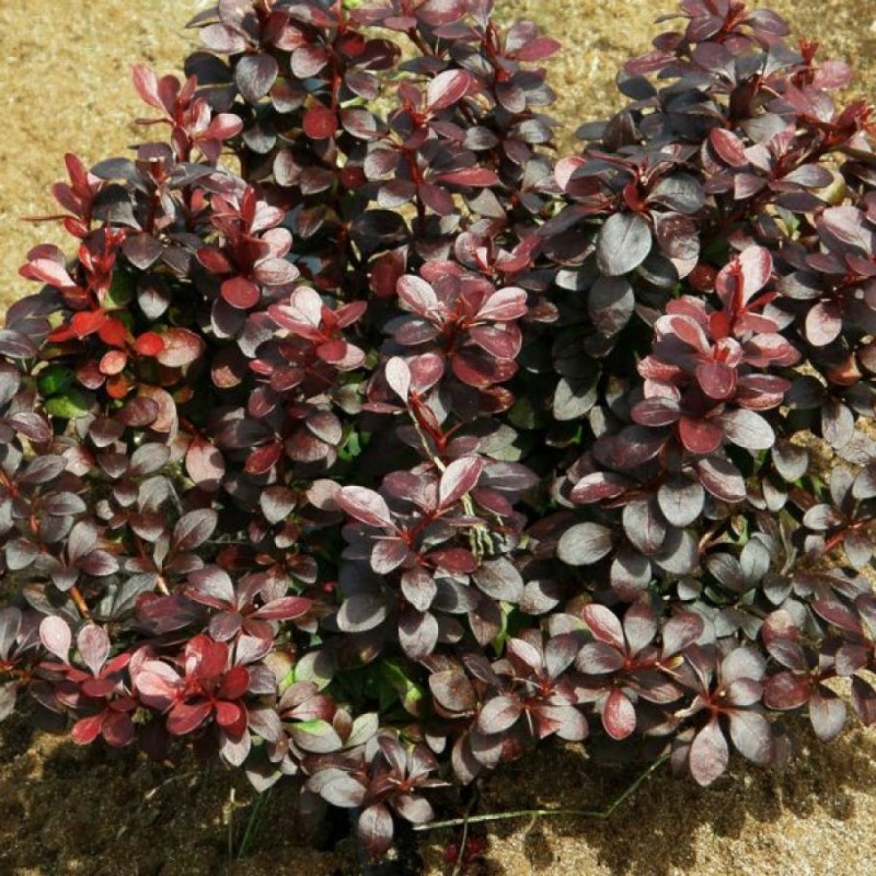 Барбарис 'Тунберга Дартс Ред Леди' Berberis thunbergii ‘Dart`s Red Lady’ - невысокий кустарник  с густой, подушкообразной  кроной и многочисленными побегами высотой до1,0 м. и диаметром кроны до 1,0 м. Листья мелкие, темно-пурпурные, слегка блестящие, удерживающиеся на кустарнике до поздней осени, осенью - ярко-красные, цветки жёлтые с красными пятнышками и полосками. Цветёт в мае. Плоды продолговатые, кораллово-красные, блестящие. Созревают в первый месяц осени и остаются на кусте почти до весны. Светолюбив. Зимоустойчив и засухоустойчив.