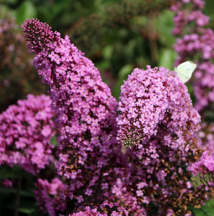 Будлея Давида Пинк Делайт Buddleja davidii 'Pink Delight' – быстрорастущий,лиственный кустарник высотой до 3 м,с широко распростертыми, немного склоняющимися вниз боковыми ветвями. Годовой прирост составляет около 30.см.Цветы серебристо-розовые, в очень крупных соцветиях.Зацветает рано и обильно на побегах текущего года крупными, очень ароматными соцветиями, привлекающими в сад насекомых-опылителей и бабочек.Прекрасный медонос.Светолюбив.Морозостойкий сорт.