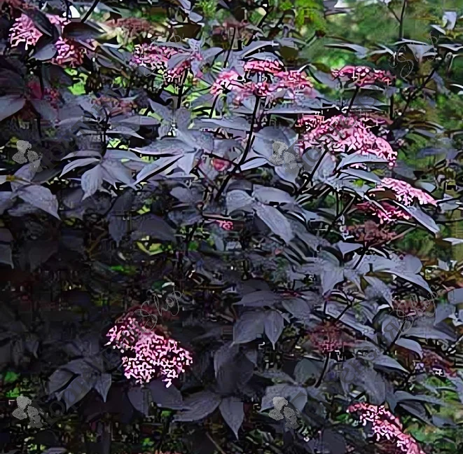 Бузина черная Блек Тауэр декоративный  кустарник с  колоновидной кроной.  Листья коричнево-фиолетовые,  Цветет с июня по июль, цветки розовые, собранные в   щитковидные соцветия, ароматные. Плоды сочные черные костянки съедобны, созревают в сентябре. Почвы предпочитает плодородные богатые азотом дренированные.  Морозостойкость -34С.