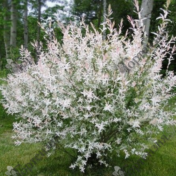 Ива цельнолистная 'Хакуро Нишики'(Salix integra Hakuro Nishiki)– невысокий, листопадный кустарник высотой до 4 м. Шаровидной формы крона формируется быстро, и в диаметре приравнивается к высоте растения. Распускается ранней весной, эффектно выделяясь на фоне молодой зелени. Период цветения наступает довольно рано, в марте, когда листва еще не распустилась. Плоды созревают в начале – середине осени.