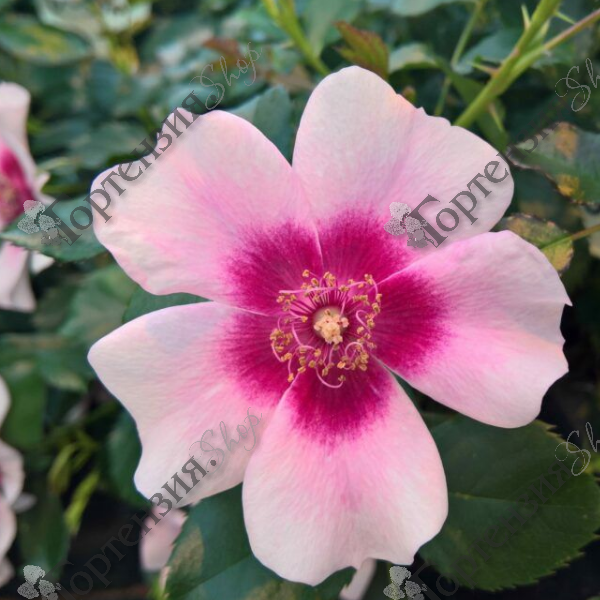 Роза миниатюрная 'Bravo Babylon Eyes' (Rose miniature 'Bravo Babylon Eyes') кустарник c компактной, плотной кроной, высотой до 50 см. Листья жесткие, блестящие. Цветение обильное, продолжительное с июня по октябрь. Цветы розовые с более темным центром, тычинки и пестик выделяются заметно.  Они устойчивы как к жаре, так и к засухе, а также к морозам. Почвы плодородные, дренированные. Сорт серии 'Babylon Eyes'.