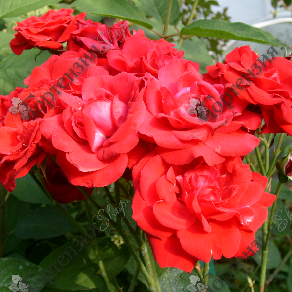 Роза полиантовая 'Nina Weibull' (Rose polyantha 'Nina Weibull') куст обычно невысокий, достигает 60-80 см в высоту и около 50 см в ширину. Листья у розы темно-зеленые, глянцевые, что создает прекрасный контраст с яркими цветками. Цветки среднего размера, около 6-8 см в диаметре, полумахровые, с 15-20 лепестками. Цвет – насыщенный, ярко-красный, иногда с легким малиновым оттенком. Цветки собраны в соцветия по 3-5 штук, что создает эффект пышного букета на каждом побеге. Аромат у розы легкий, едва уловимый, но приятный. Место посадки солнечное или слегка затененное место с хорошо дренированной почвой. Благодаря своим компактным размерам и обильному цветению, роза отлично подходит для создания ярких акцентов в саду, можно использовать в качестве бордюра вдоль дорожек и газонов, в групповых посадках на клумбах и в цветниках, для создания ярких пятен на фоне зеленых насаждений, контейнерном выращивании на балконах и террасах. Морозостойка (до -29°C), что позволяет выращивать ее в большинстве регионов России без особого укрытия на зиму.