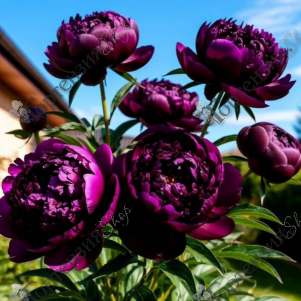 Пион древовидный 'Пурпл' - высотой до 2,0 м.,имеет фиолетовые цветки с более темными пурпурными штрихами в центре, лотосовидные, 18-20 см в диаметре. Аромат сладкий, насыщенный. Сорт сильнорослый и очень выносливый. На одном кусте может быть от 30 до 70 цветков. Диаметр каждого от 20 до 25 см. Растение декоративно и после цветения из-за необычной формы крупных, ярко-зеленых  листьев. Пион неприхотлив, устойчив к болезням. На одном месте без пересадки может расти более 20 лет. Использование: одиночные и групповые посадки.